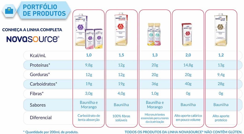 Novasource® GI é uma fórmula padrão destinada para nutrição de pessoas com necessidades especiais, com condições específicas de dietas e/ou restrições alimentares.